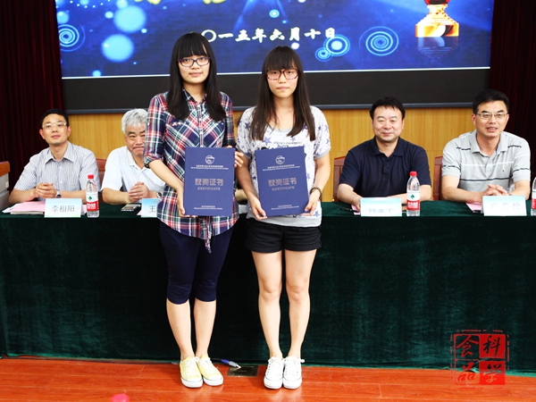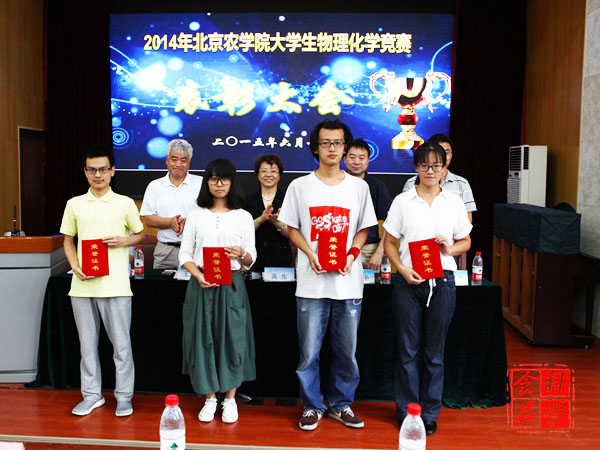 校团委书记李相阳老师首先宣读获奖学生名单,2014年我校共有31人参加大学生物理竞赛,其中6人获得市级奖励,25人获得校级奖励。共有77人参加大学生化学竞赛,其中12人获得市级奖励,45人获得校级奖励。