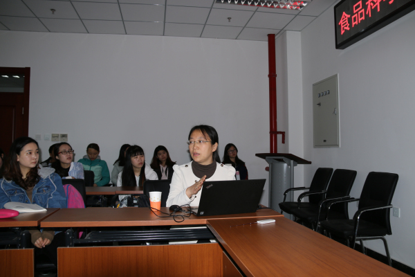 2017年4月10日,食品论坛第一场报告在食品楼218召开。学院党总支书记党登峰、团委书记刘海燕到场,论坛邀请了食品科学与工程系青年教师、副教授、吕莹博士主讲,论坛由研究生程怡然主持。