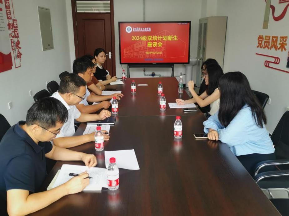 8月25日,为了使双培新生尽快适应即将开始的大学生活,了解双培计划培养方案,提高双培人才培养质量,开云手机站登录入口在食品楼214召开新生座谈会,学院教学副院长丁轲、学生工作负责人闻海洋、食品科学与工程系系主任徐广谦、教学秘书段慧霞、辅导员官凌霄参加座谈。