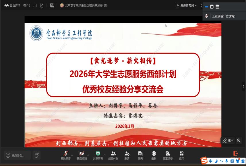 此次交流会内容充实、干货满满,不仅让同学们对西部计划政策有了更深入、全面的了解,更有效激发了大家扎根西部、服务基层的责任感与使命感。愿北农学子以青春之名,赴西部之约,携专业所长赋能西部发展,用奋斗与坚守书写属于自己的青春答卷,让青春之花在西部基层绚丽绽放。