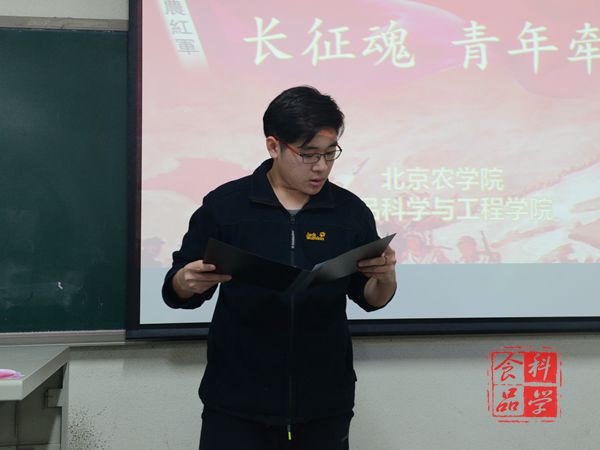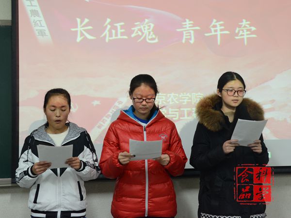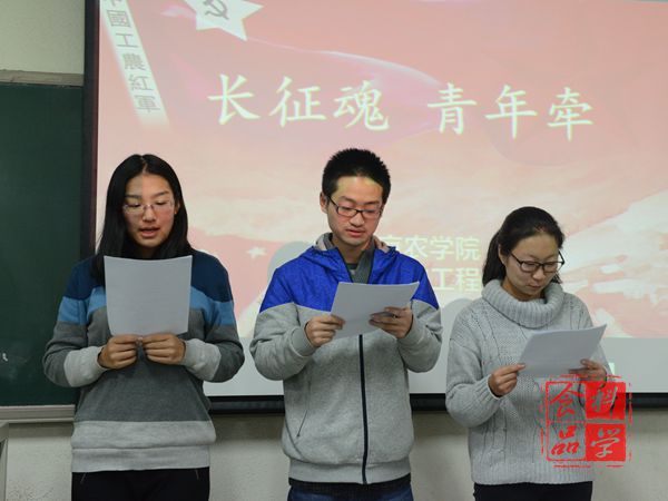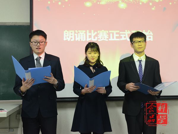 11月28日晚,院团委策划举办的“长征魂,青年牵”主题朗诵比赛如期举行。校团委宣传部副部长汪俞彤,院团委副书记秦翠芳、组织部部长赵晗、实践部部长张丽萍、宣传部部长张晨悦,院青协会长韩俊,学生会文艺部副部长黄胤宁及社联秘书长李子月担任比赛的评委。学院大一、大二学生代表参加了比赛。