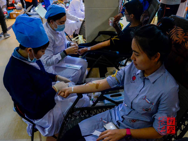 一早,校、院的志愿者们就准备就位,等待着献血者的到来。同学们陆续到来等待着排队体检的时候志愿者们贴心的送上红糖水、热牛奶以及小面包,防止同学们因为抽血会引来的不适。体检的时候所有人都积极配合医生,检验合格的同学拿着自己的表格排队献血,等待的过程中大家并没有对一会儿的抽血感到畏惧,而是轻松地和同伴聊着天。献血结束后,同学们拿到了属于自己的无偿献血证,这不仅仅是几页薄薄的纸张,而是同学们爱心的证明,是至高无上的光荣。