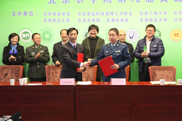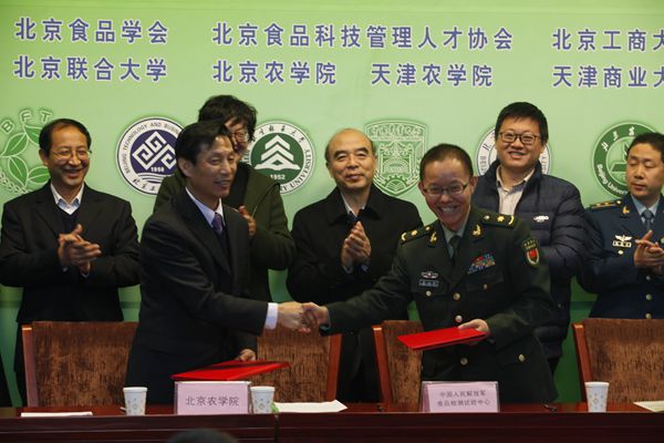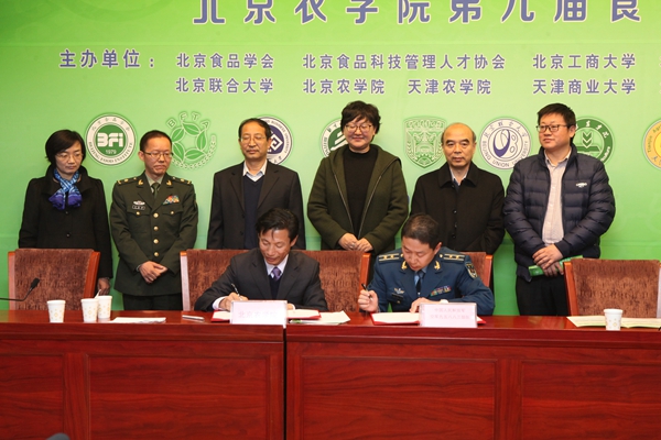 本届食品节以“军民共建 创新创业”为主题,北京农学院食品学院院长仝其根与中国人民解放军食品检测试验中心主任耿战辉、中国人民解放军95883部队训练处陈超建处长分别签订了人才培养合作协议。