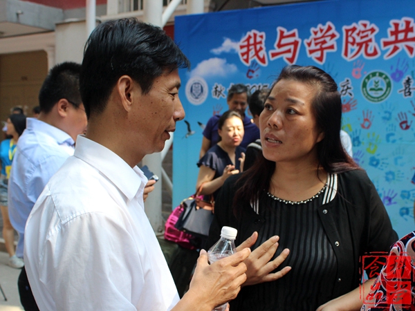 (仝其根院长热情接待新生家长)