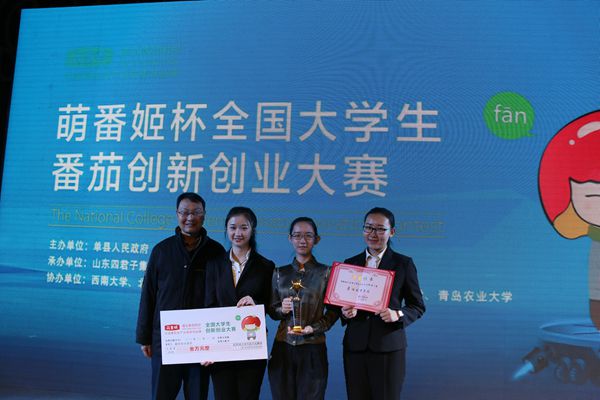 首届“萌番姬杯”全国大学生番茄创新创业大赛由山东单县人民政府主办,西南大学、北京农学院、首都经济贸易大学、山东农业大学、青岛农业大学承办,北京医食同源科技有限公司、山东四君子集团赞助。大赛于2014年10月25日正式启动,3个月以来,得到了方方面面的广泛关注,吸引了全国1000余名在校大学生的积极参与。通过初赛和复赛,我校食品学院番茄红素膳食片团队同西南大学、上海交通大学、海南大学、四川工商职业学院等5所高校的6支团队参加决赛。