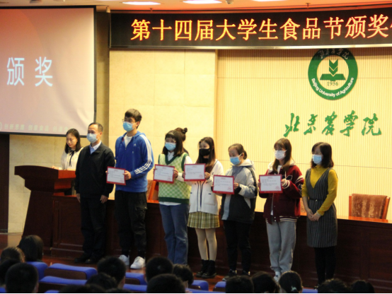 首先由主持人宣读了食品节获奖名单,罗蕊、韩涛、王雪、张红星等老师和校友魏颖依次为最具人气奖、优秀奖、三等奖、二等奖和一等奖获奖代表颁奖。