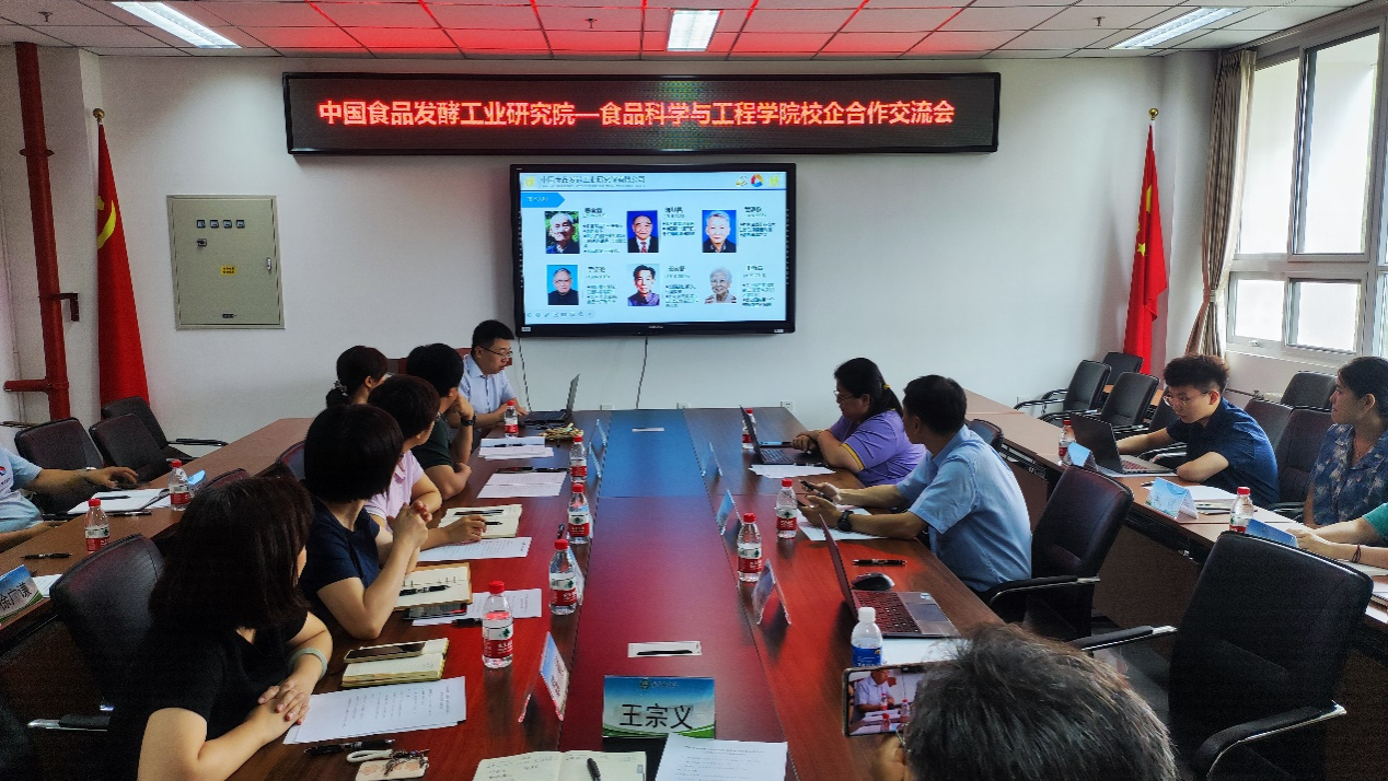 座谈会上,学院党委书记靳晓熙对郭新光一行到访表示热烈欢迎,希望双方能够在人才培养、技术研发、成果转化等领域加强沟通交流,推动校企合作再出新成果、再上新台阶,开启校企合作新篇章。郭新光介绍了中国食品发酵工业研究院的总体情况以及标准与数字化部的研究领域以及目前主要开展的项目,希望双方发挥各自优势,多领域、多层次、高水平开展校企共建,实现双方合作互惠互赢。校企双方就本科生实习实践、研究生联合培养、课题联合申报以及行业标准制定等议题进行了广泛深入、气氛热烈的交流研讨。