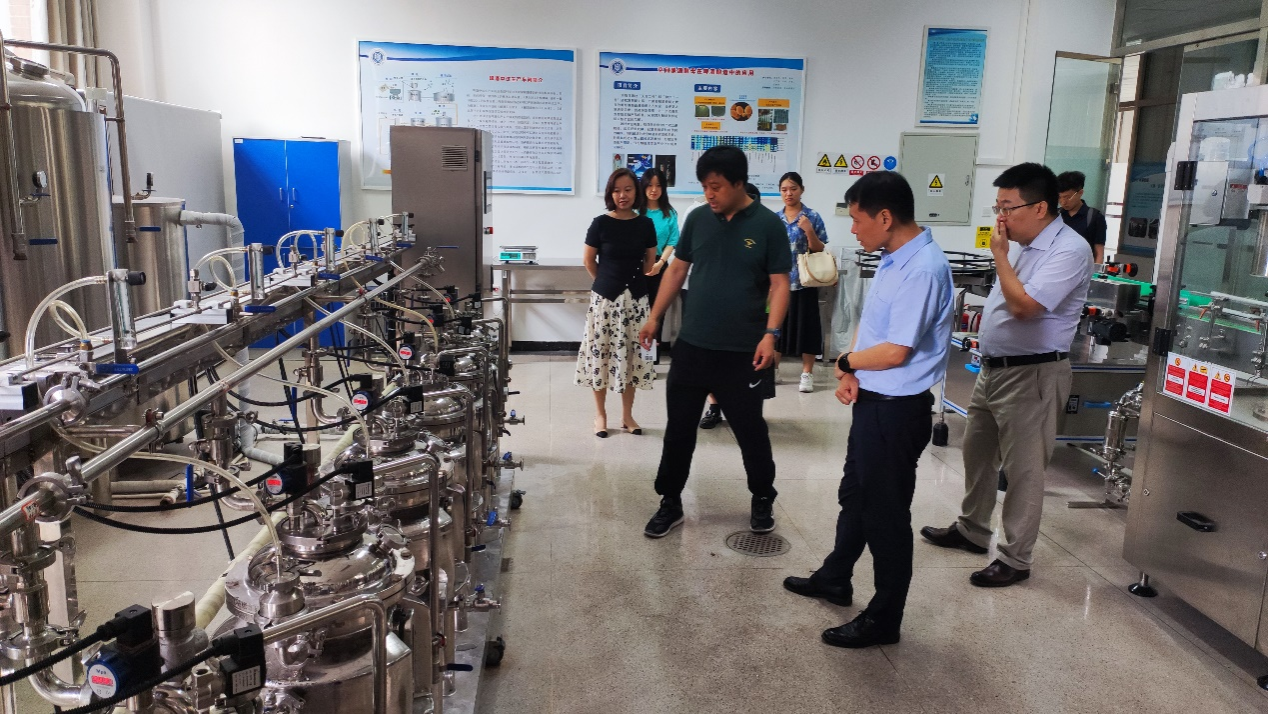 会前,丁轲带领郭新光一行参观了学院粮油加工、果蔬贮藏加工、啤酒、葡萄酒酿造以及益生菌中试车间。