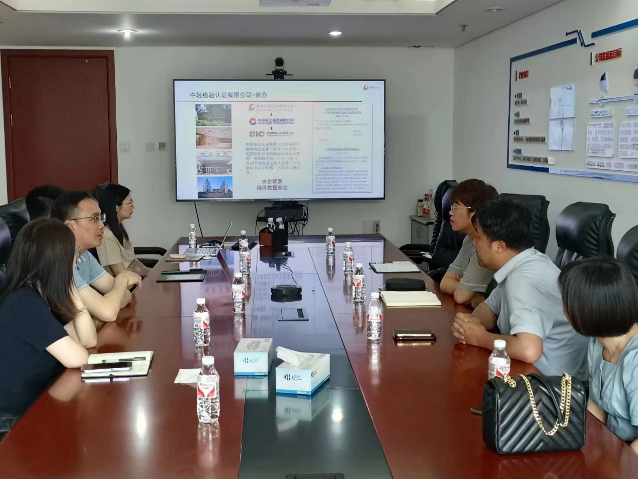 靳晓熙向中轻检验认证有限公司长期以来在科研合作、学生就业等方面为食品学院师生提供的支持和帮助表示感谢。介绍了食品学院的发展定位、学科设置、科研团队、人才培养等方面的特色和优势,希望双方持续在科研创新、检测服务、实习实践、毕业生就业等进行深入交流,优势互补、共促发展。丁轲介绍了食品学院的教学科研、科研平台、重点实验室,以及学生实习实践等方面情况。