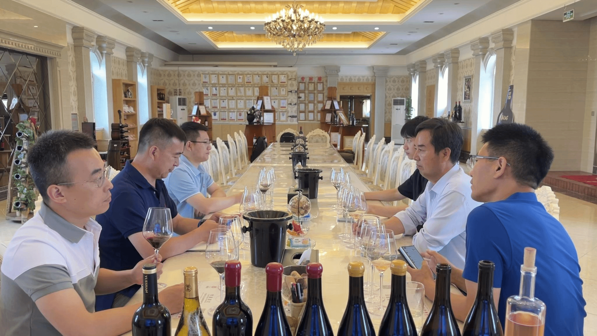 在华昊酒庄,魏晓峰代表团队对双方合作申请的“2023年宁夏葡萄及葡萄酒特色产业集群项目产学研用科技创新项目”的进展情况及初步结果进行了汇报。团队对酒庄的桃红、“亿万年”、“世外之物”、利口酒等马瑟兰系列产品进行了品鉴,并提出了改进建议。李德美对酒窖的科学性建设提出了指导意见,魏晓峰对酒庄目前开展的套袋试验给出了经验看法。