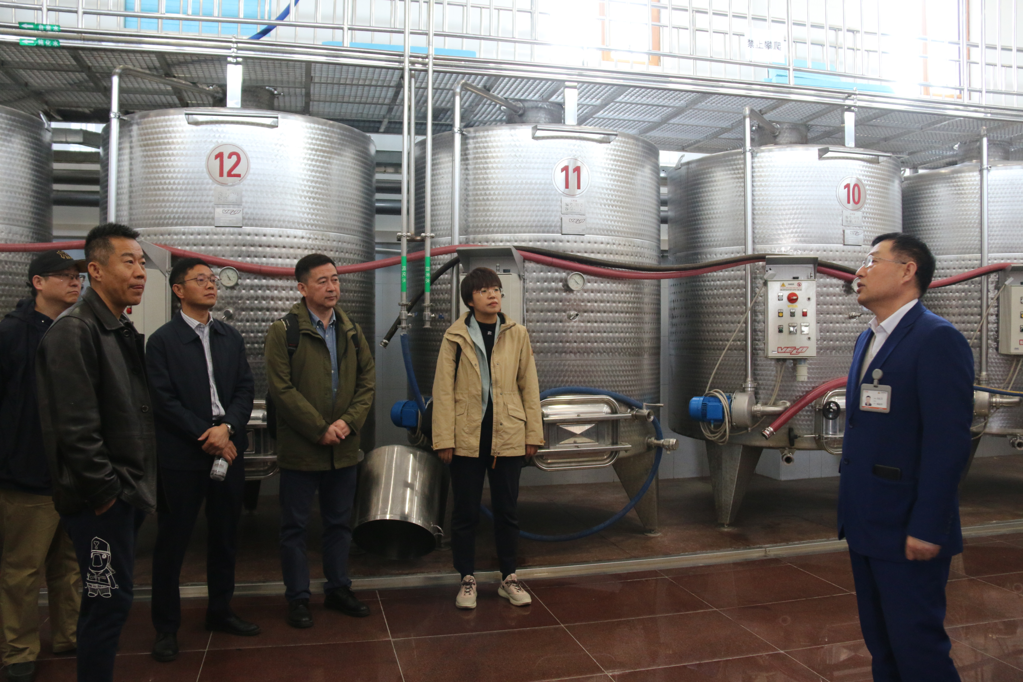 座谈会后,在莱恩堡酒庄总工程师、首席酿造师李虎军带领下,双方成员一同参观了葡萄酒文化博物馆、发酵车间、化验分析实验室、葡萄种植示范园等地,对企业发展情况进行了进一步深入了解。