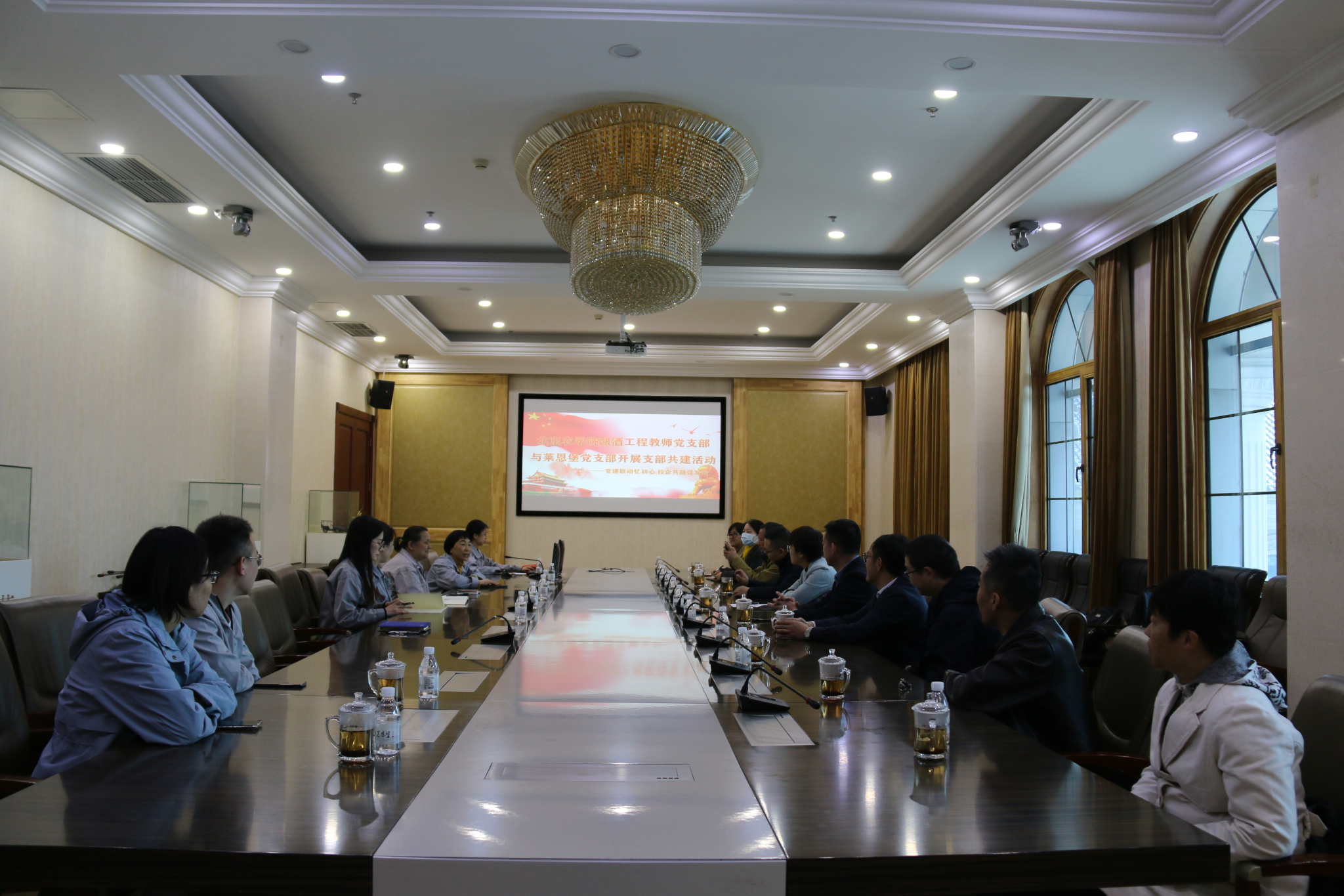 4月3日,开云手机站登录入口酿酒工程教师党支部赴北京房山,与莱恩堡酒庄党支部开展“党建共建忆初心 校企共融促发展”主题党日活动。学院党委书记靳晓熙,学生工作负责人闻海洋,酿酒工程系教师党支部书记徐文生、系主任李德美,莱恩堡酒庄党支部书记李景兰,总工程师、首席酿造师李虎军参加活动。