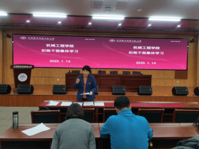 近日,机械工程学院纪委在师资培训楼二楼报告厅组织学院全体纪委委员、党支部纪检委员、纪检专员、纪检监察监督员进行2025年度第一次集体学习,专题学习贯彻二十届中央纪委四次全会精神。会议由学院纪委书记姚丽华主持。