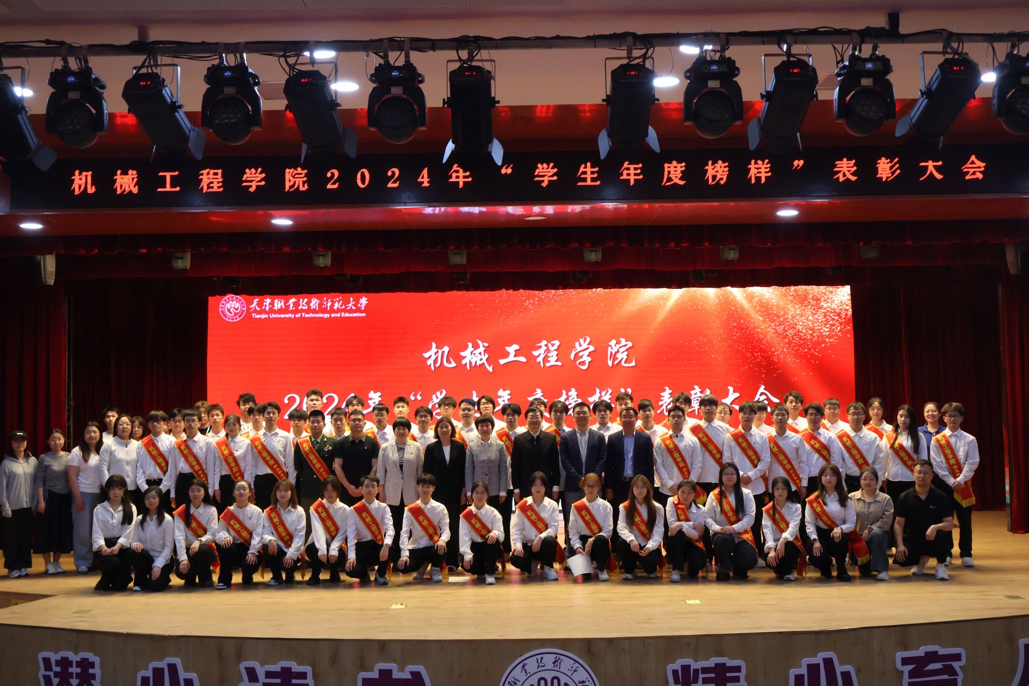 为发挥学生榜样引领作用,鼓励学生对标典型、学习榜样、锐意进取,助力本科教育教学审核评估工作,4月29日,机械工程学院在大学生活动中心四楼展演厅举办2024年“学生年度榜样”表彰大会。校党委学工部副部长刘娜、校团委副书记衣传波、机械工程学院全体院领导出席,学院全体辅导员和学生代表参会,大会由学院党委副书记韩树明主持。