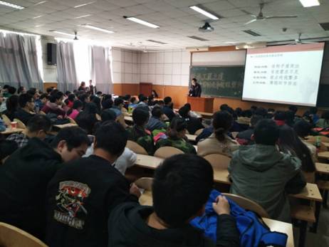 随后,戚霄从当前就业形势与政策、把握2018年招聘季、建立支持系统、简历制作、面试技巧等五个方面,结合往年实例,进行了具体细致地宣讲说明,嘱咐大家调整心态,充分做好求职准备,积极开拓就业渠道,慎重工作选择。2013级辅导员李小华结合近期实例,开展毕业生专题安全教育,指导毕业生提高防范意识,避免误入传销、陷入校园贷等,注意防盗防骗、人身安全等,祝福大家平平安全找工作,顺顺利利踏入社会。