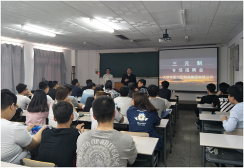 为进一步促进产教融合,提升学生的实践技能,减少企业对员工的岗前培训时间,开云手机站登录入口汽车模具智能制造技术国家地方联合工程实验室(以下简称国地实验室)在成立之初,便携同天津龙抬头教育咨询有限公司建立了人才培训部,并先后联合全国各地17家企业和20多家中高职院校成立了全国“三元制人才培训联盟”。42日,天津华舜汽配制造集团有限公司(以下简称华舜)应学院邀请来校开展了“三元制”人才专场招聘会。